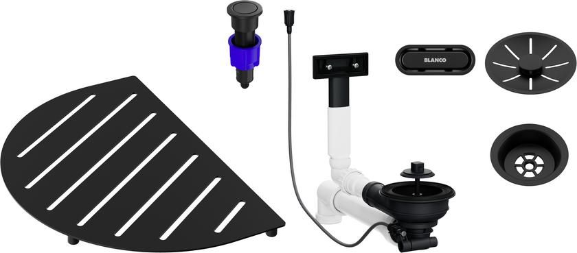 Комплект из аксессуаров для моек OOVALON и отводной арматуры InFino с клапаном-автоматом и корзинчатым вентилем 3 1/2 дюйм,Цвет чёрный матовыйВключает решетку и сливной комплект